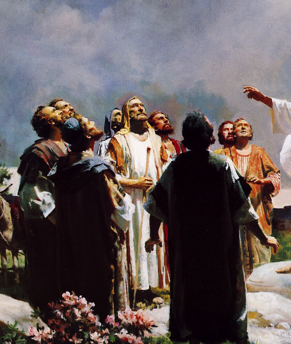 Jesus was seen by his disciples as ascending into the clouds above their heads. These clouds may be interpreted as the conditions in their own collective consciousness through which the Lord of Love was making his royal exit from the earthly planes back into the higher planes of being from which he had come, and from which we all have come—the “kingdom of heaven” which he had told them more than once is within you.”   This could also be the inference made by the two men in white apparel whom they reportedly saw standing with him and whom they heard say: “Ye men of Galilee, why stand ye gazing up into heaven?  This same Jesus, who is taken up from you into heaven, shall so come in like manner as ye have seen him go into heaven.” (Acts 1:11)